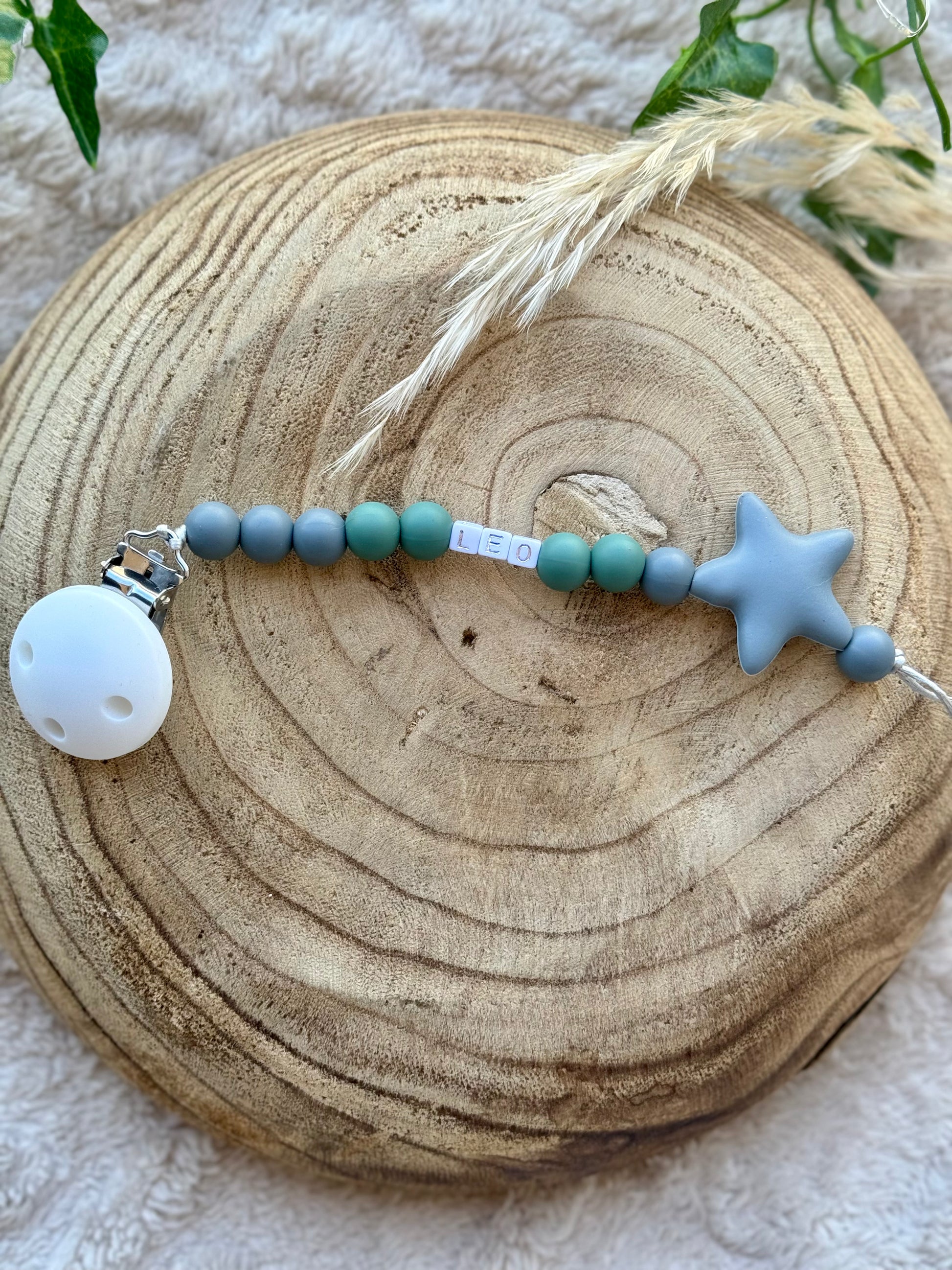 Offrez à votre bébé un accessoire à la fois pratique et élégant avec notre attache-tétine pour garçon. Conçue avec des perles en silicone de haute qualité, cet attache-tétine est orné d'un motif étoile qui apporte une touche de charme et de modernité.