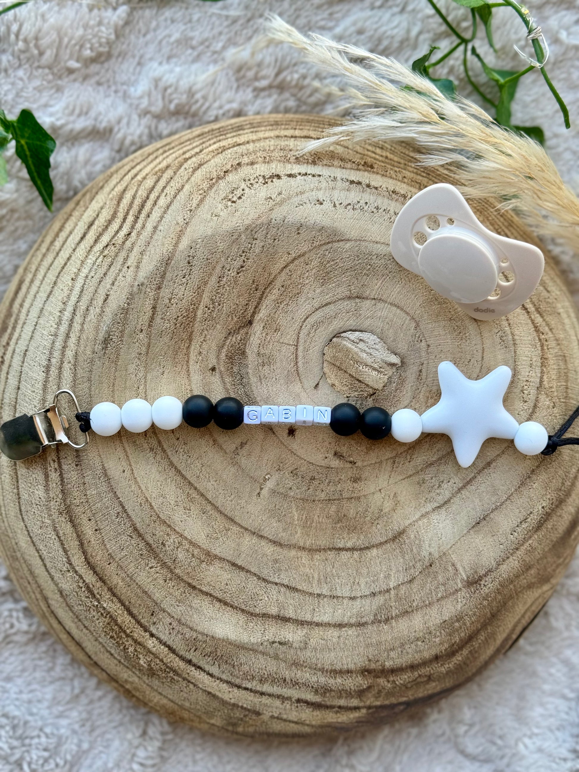 Offrez à votre bébé un accessoire à la fois pratique et élégant avec notre attache-tétine pour garçon. Conçue avec des perles en silicone de haute qualité, cet attache-tétine est orné d'un motif étoile qui apporte une touche de charme et de modernité.