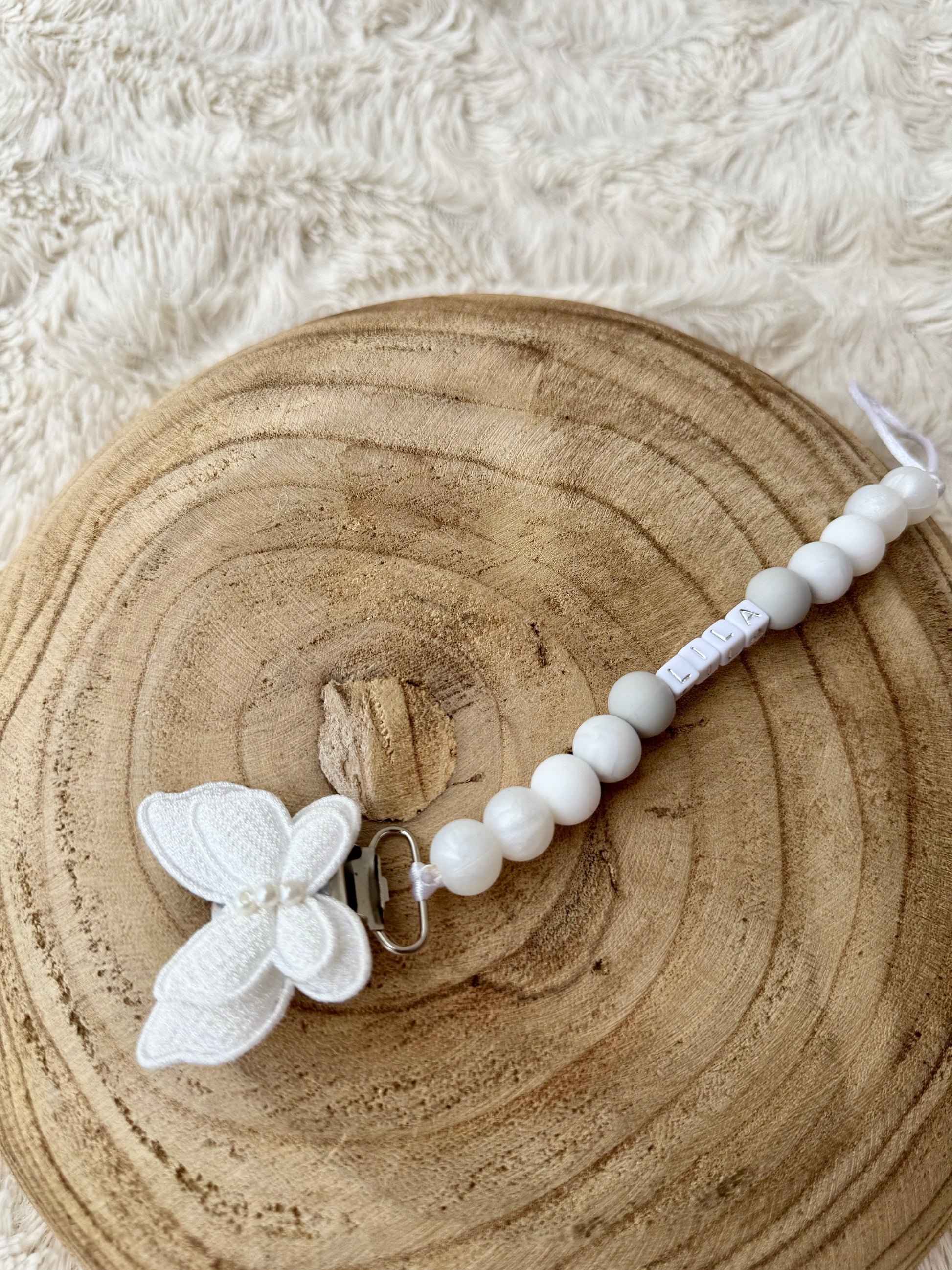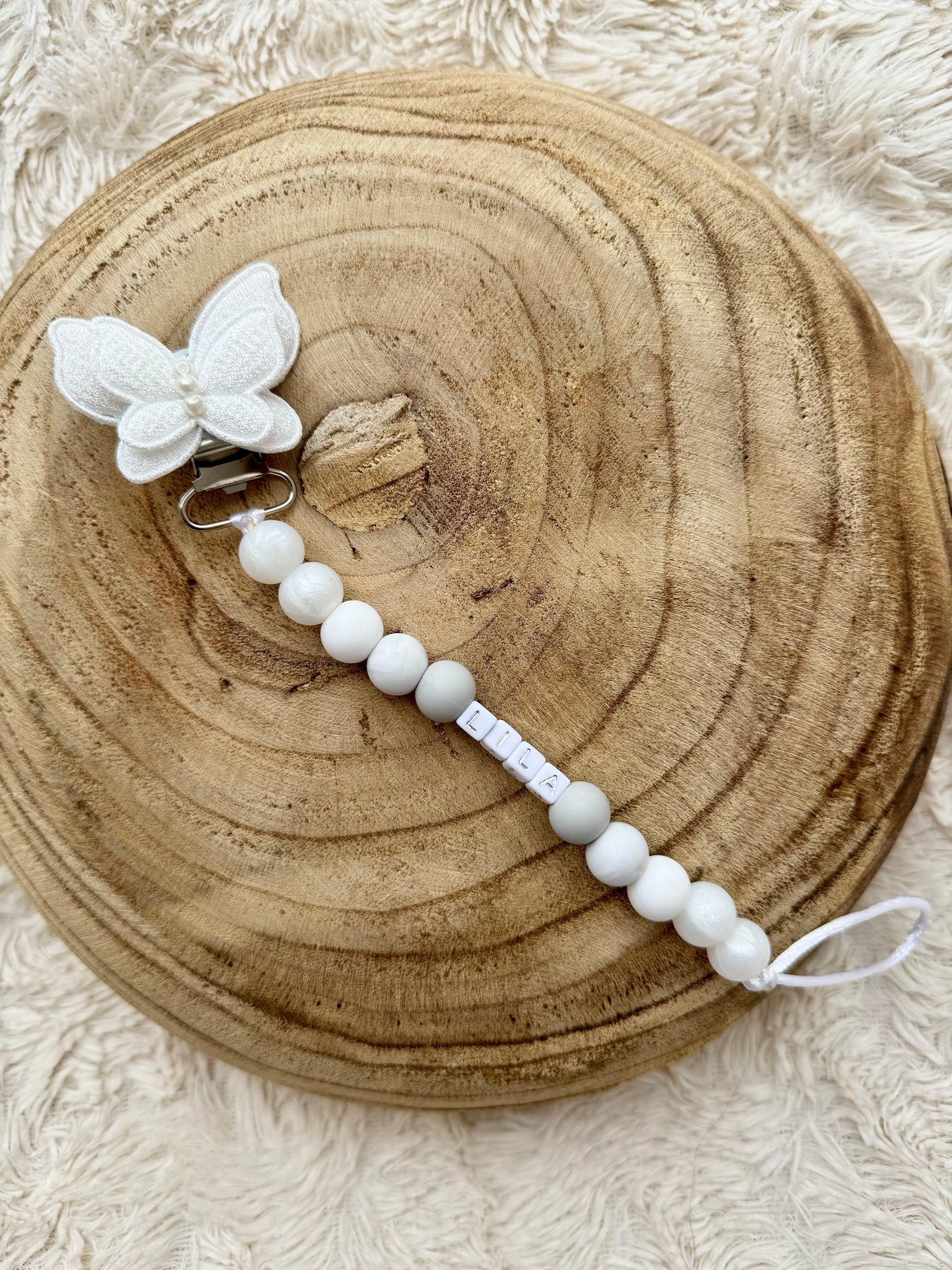 ♡ Un joli clip orné d'un papillon en tissu délicat, qui apporte une note de couleur et de charme à l'attache tétine