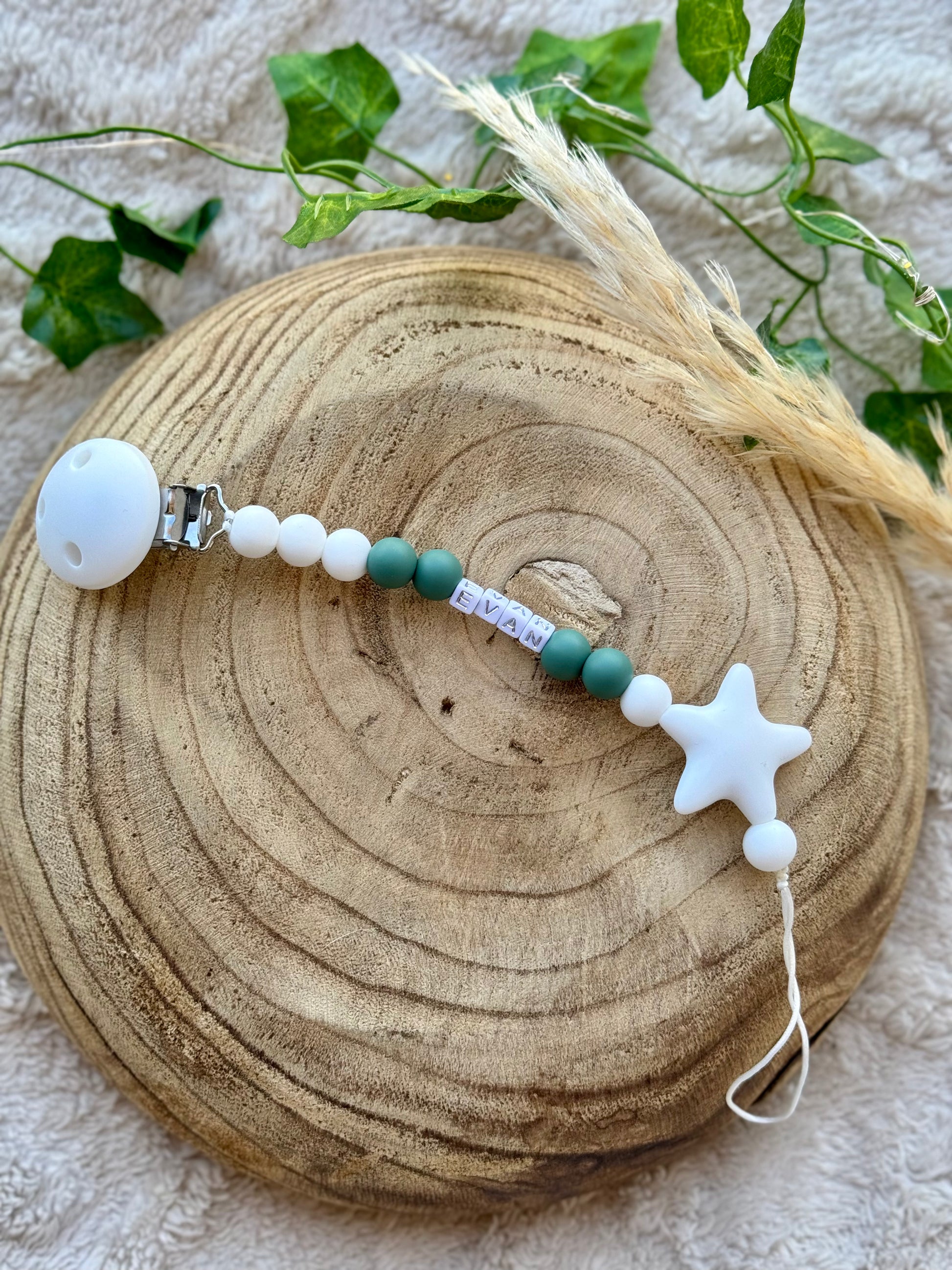 Offrez à votre bébé un accessoire à la fois pratique et élégant avec notre attache-tétine pour garçon. Conçue avec des perles en silicone de haute qualité, cet attache-tétine est orné d'un motif étoile qui apporte une touche de charme et de modernité.
